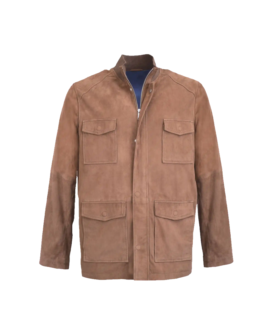 Herren Lederjacke aus feinstem Ziegenvelours, mit vier aufgesetzten Taschen, Variokragen und mit Baumwollfutter