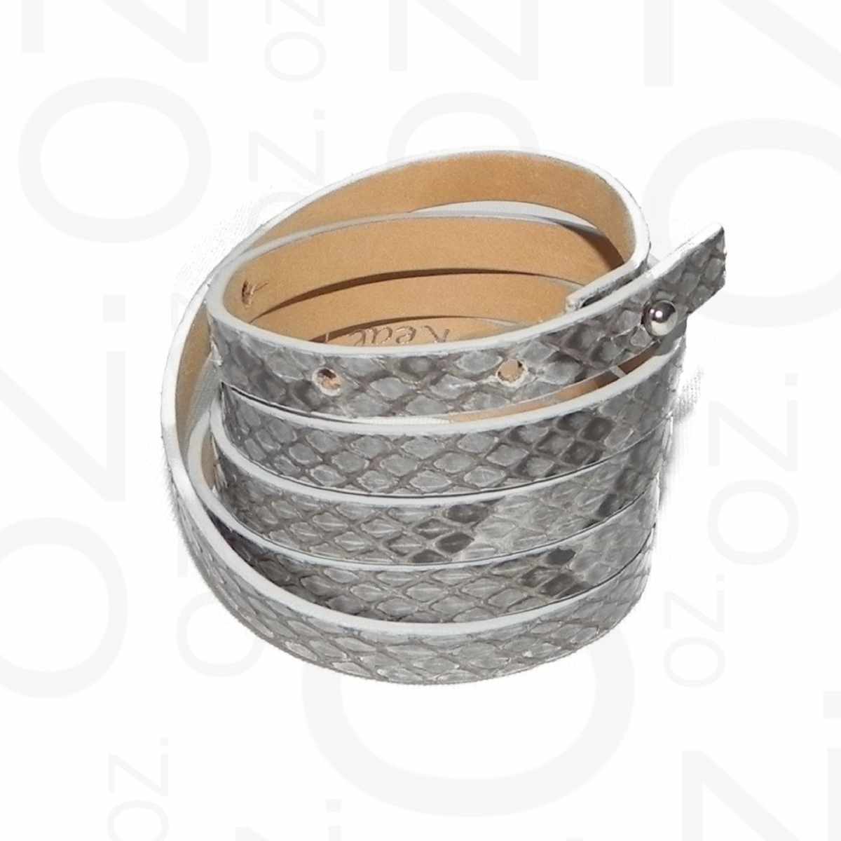 Hochwertiges, handgefertigtes Lederarmband. Das Lederarmband ist 990 mm lang und 8 mm breit. Mit silbernem Metallverschluss und fünf Löcher zum Verstellen. Kann auch als Microgürtel getragen werden. Made in Italy. Material: Pythonnappa - 100 % echtes Leder - zertifiziert / Herstellungsland: Made in Italy / Farbe: GRAU / Löcher zum Verstellen: 5 / Verschluss: Silberner Metallverschluss und 5 Löchern zum Verstellen / Länge: 990 mm / Breite: 5 mm / Gewicht: 12 g
